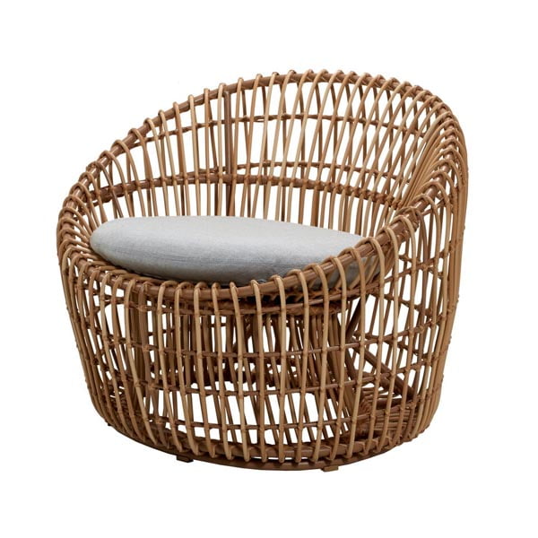 Cane-line Nest pyöreä tuoli täydentää omalla rennolla ilmeellän kesäterassin tunnelmaa. Kuppimaiseen ja pehmustettuun tuoliin mukava käpertyä nautiskelemaan.