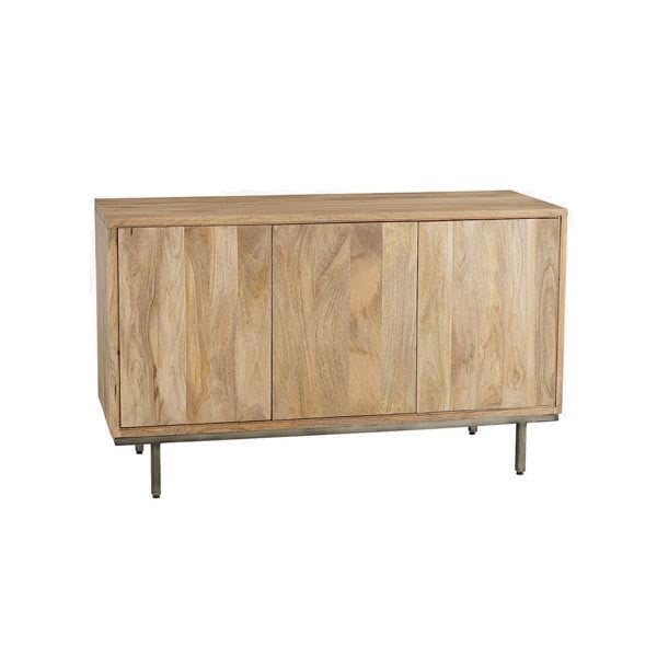 Ellos Home Mizu senkin ovia koristaa viistetty kuvio, joka korostaa upeasti materiaalina käytettyä mangopuuta. Sirot metalliset jalat pitävät senkin ryhdikkäästi paikallaan.