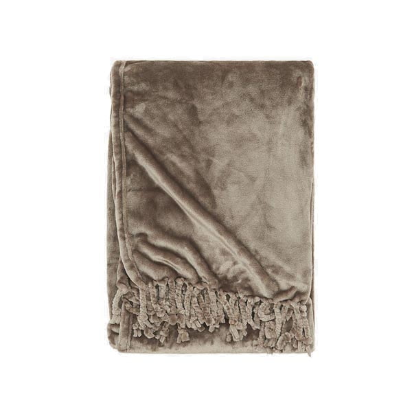 Ellos Home Wile torkkupeitto on pehmeää ja kauniisti hohtavaa fleeceä, joka tarjoaa lämpimän suojan syksyn ja talven kylmiin päiviin. Muhkeat hapsut sivuilla.