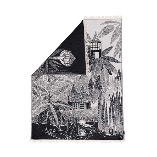 Finlayson Nyytin talo torkkupeite on 100% puuvillaa. Mustavalkoinen värimaailma sopii hyvin mukaan mihin tahansa sisustukseen tuoden Muumimaailman tunnelmia tilaan.