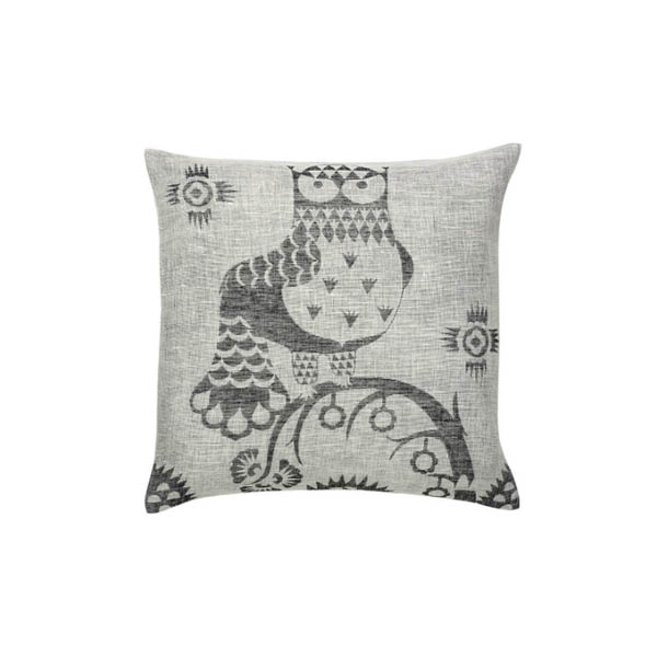 Iittala Taika tyynynpäällistä koristaa Klaus Haapaniemen suunnittelema tarunhohtoinen kuosi, jota tähdittää hauska pöllöhahmo.