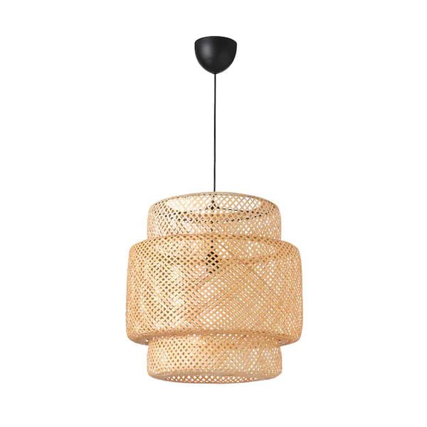 Ikea Sinnerlig valaisin on valmistettu bambusta, mikä antaa valaisimelle miellyttävän pehmeän ilmeen. Varjostimen punos siivilöi valoa pehmeästi ympäröivään tilaan. Sopii hyvin olohuoneeseen tai vaikkapa ruokailutilaan.