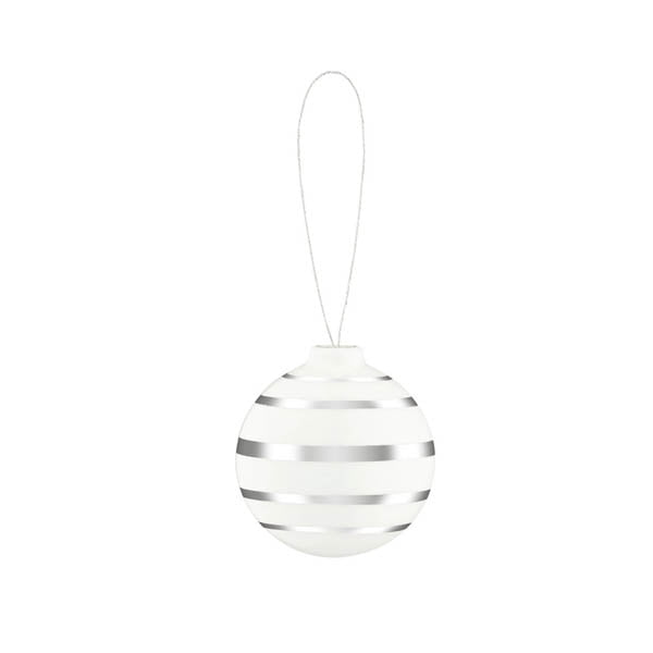 Kähler Omaggio koristepallon hopeiset raidat tuovat kaunista säihkettä joulukuusen ilmeeseen sekä kodin joulusisustukseen erilaisissa asetelmissa.