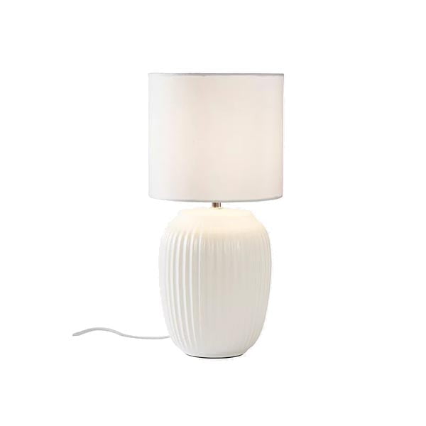 Karlsson pöytävalaisimen runko on valkoista keramiikkaa ja varjostin viskoosisamettia, jotka yhdessä antavat valaisimelle kauniin ilmeen.