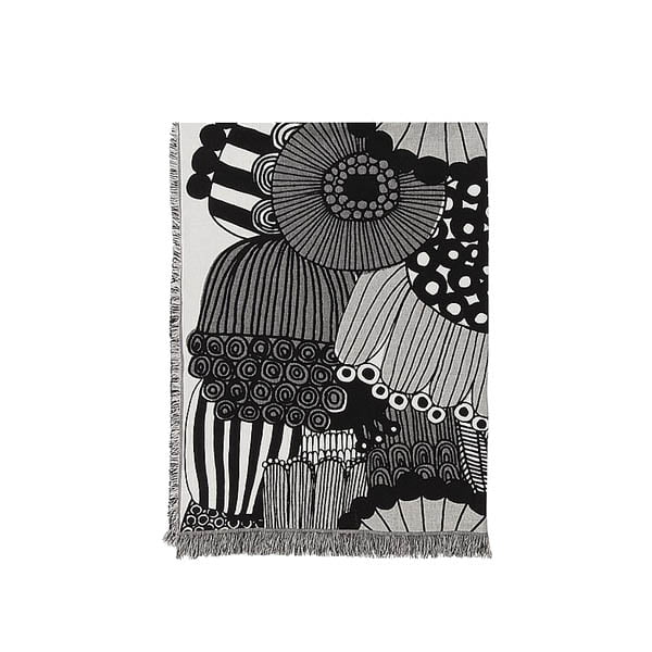 Marimekko Siirtolapuutarha torkkupeiton hurmaava kukkakuviointi ja hapsut reunoilla antavat sille raikkaan, mutta samalla ajattoman rohkean ilmeen.