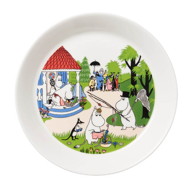 Muumi-sarjan Lähdetään lomalle kuvituksessa Muumilaakson väki valmistautuu lomamatkalle yksinäiselle saarelle.