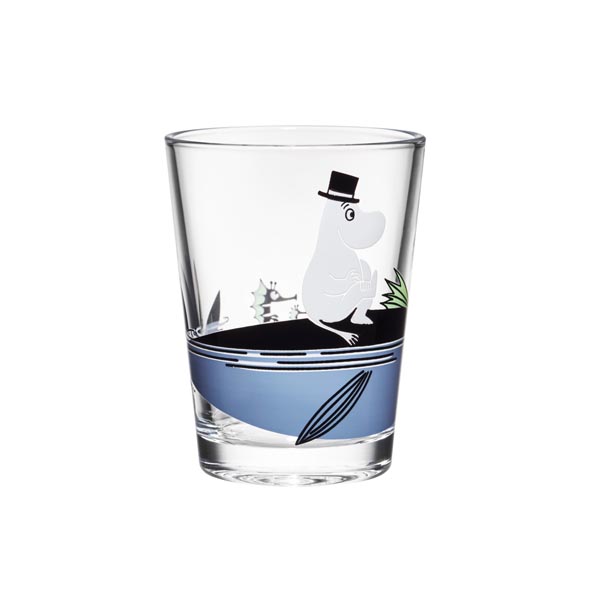 Muumit juomalasi Muumipappa sopii loistavasti kesän kattauksiin. Muumipappa istuu kaikesssa rauhassa ongella ihmettelemässä maailman menoa.