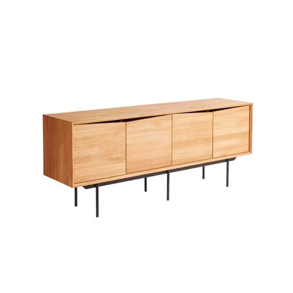 Tammesta valmistettu senkki, jossa sirot metalliset jalat. Tyylikäs säilytyskaluste vaikkapa olohuoneeseen.