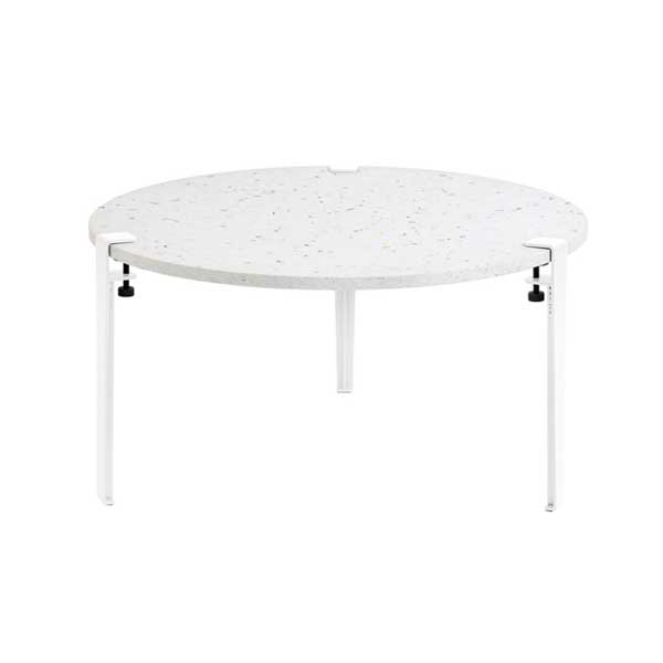 Tiptoe Venezia sohvapöytä koostuu jämäköistä metallisista jaloista, joita pystyy soveltamaan myös muualle sisustukseen. Pöydän taso on valmistettu kierrätetystä muovista, vaikka näyttääkin hieman valkoiselta marmoripinnalta.